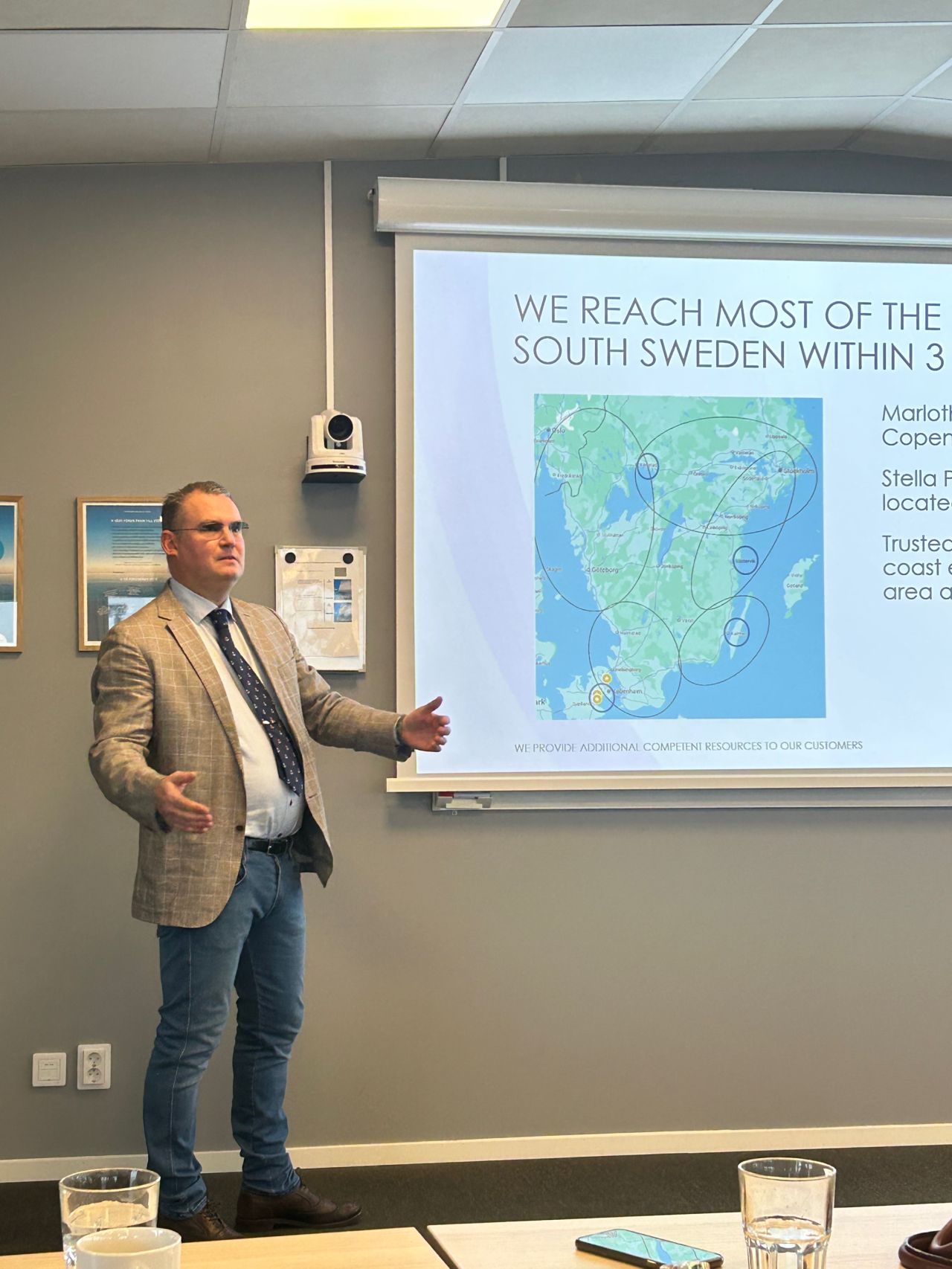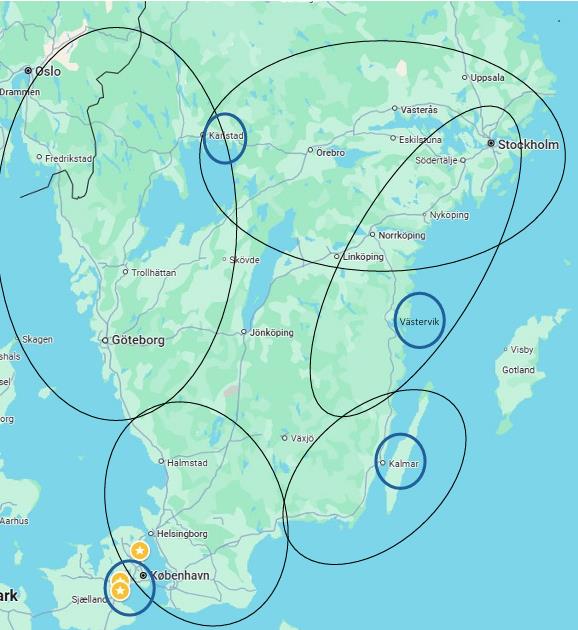 WE REACH MOST OF THE PORTS IN SOUTH SWEDEN WITHIN 3 HOURS